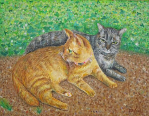 お茶子とトラ 油彩 F6 飼ってる猫さんをモデルに描きましたやっぱり好きなものを描く時は気持ちが入ります
