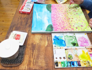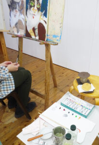 外は雪が降っています。お越しの際は、どうぞ足元にお気をつけください。 アトリエの中は、あたたかくしていつも通り、絵を描いています。